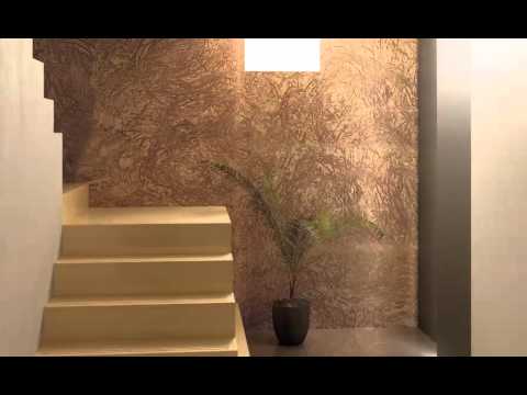 Thick acrylic-siloxane textured coating, water repellent, finished with decorative breathable, washable, water-based paints. For interior use.